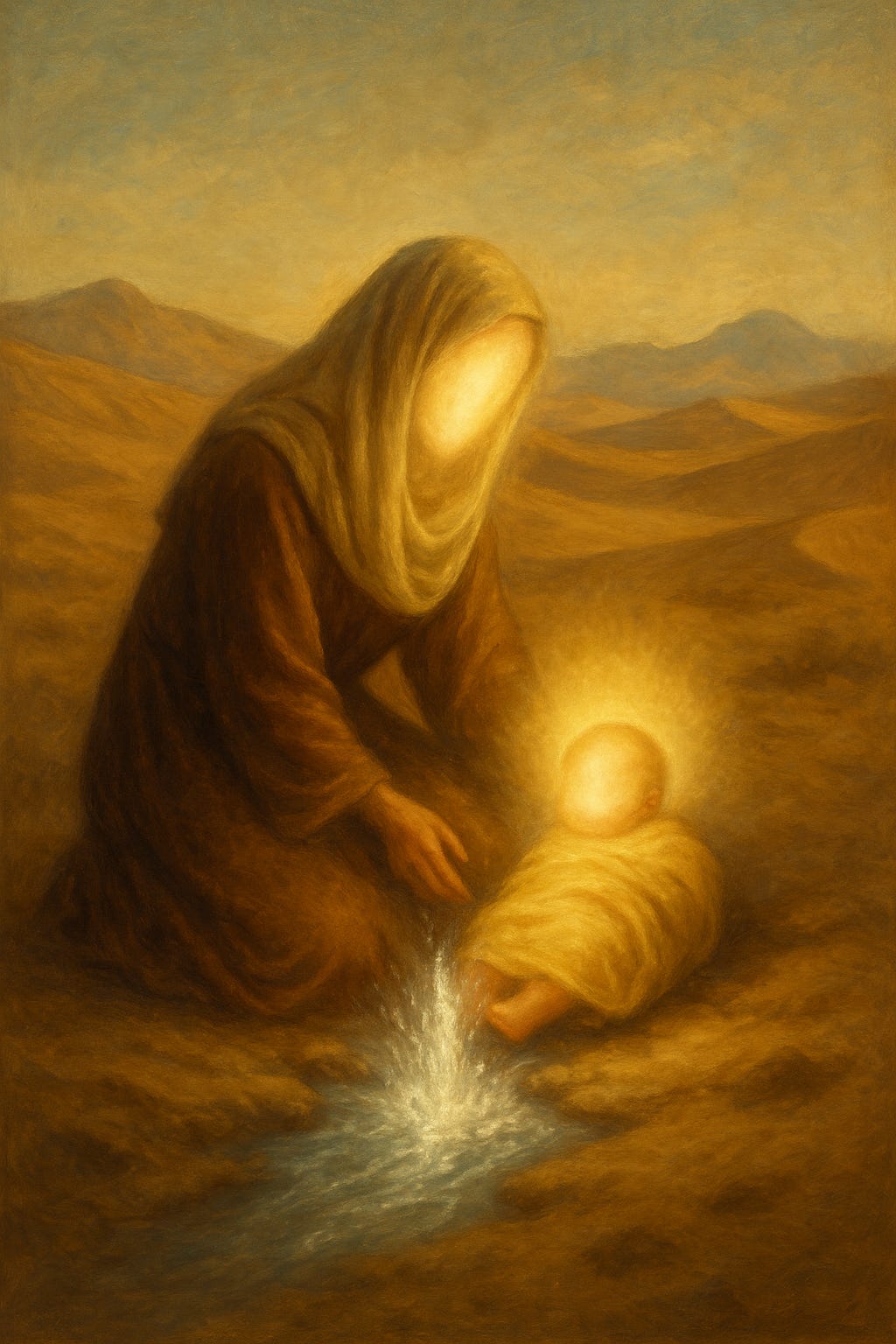 Seven times she ran between the two hills. Her feet were blistered, her soul burning with hope. In the dip between the hills, she even ran faster—fearful she might lose sight of her child.