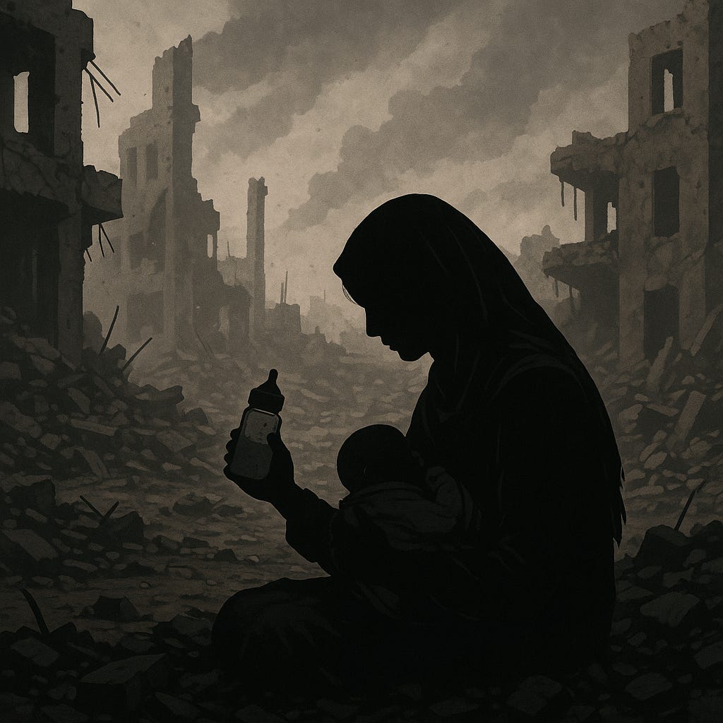 The irony of World Breastfeeding Week is bitter in this context. As global campaigns post slogans about love and nourishment, Zionist bombs fall on maternity clinics, and infant formula is considered contraband.