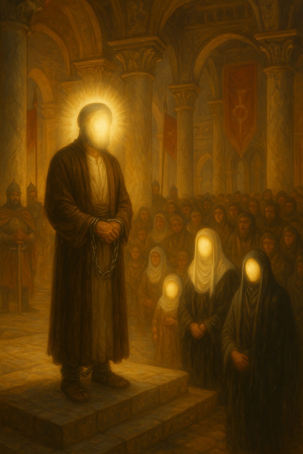 Remember: the Imam was chained. His body was weak. His family — women and children — stood beside him in veils and sorrow.