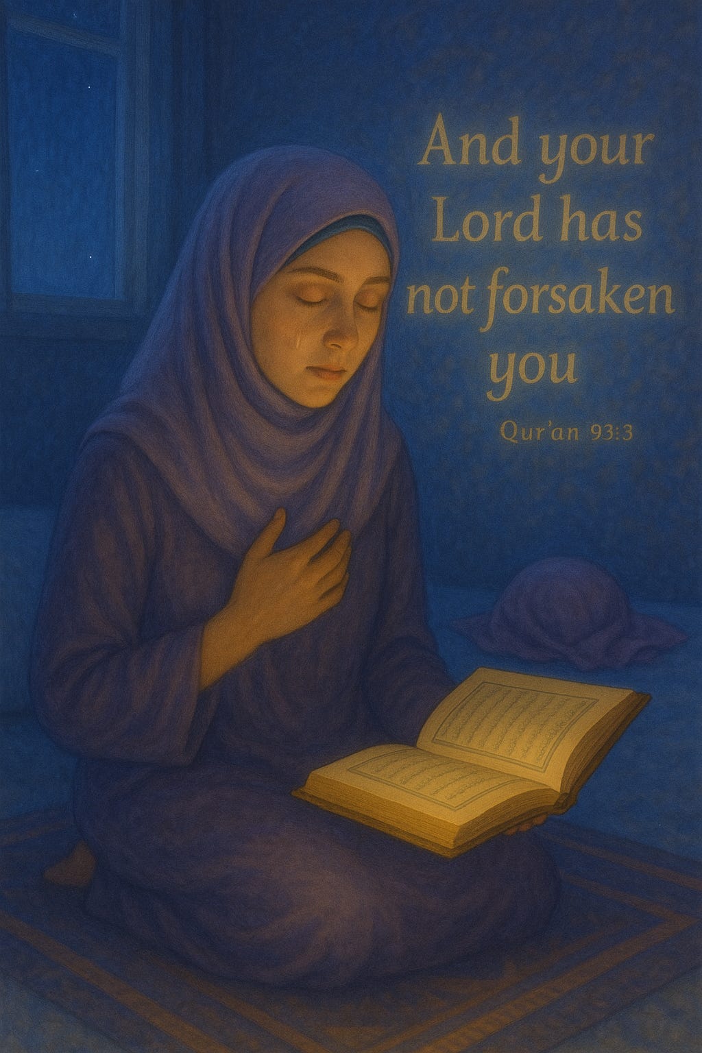 She sat on her bed, the silence deafening, her heart heavy and hollow. The prayer mat in the corner looked more like a stranger than a refuge. And for the first time, she didn’t speak to Allah with memorised supplications. She just whispered with truth: