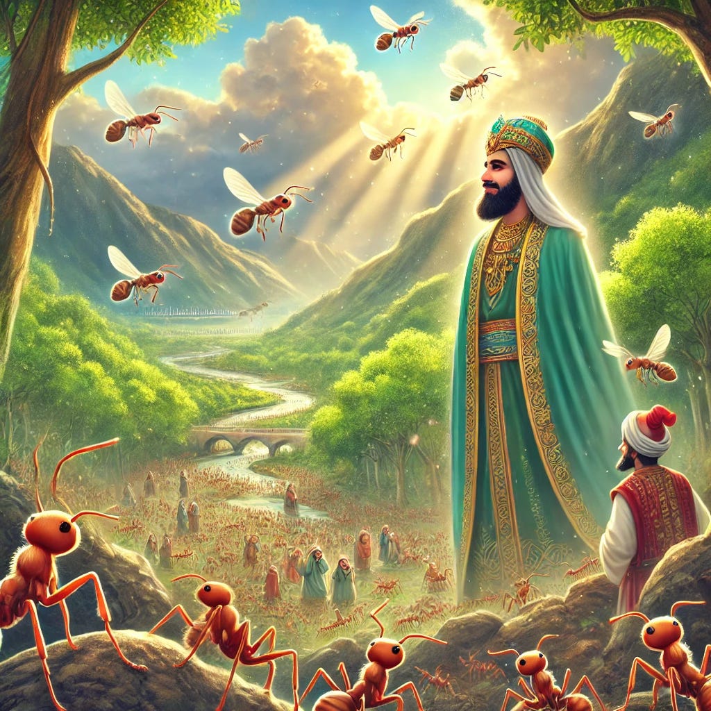 During his reign, there was an ant known for her noble qualities. She was selfless, dedicated to her community, and always prioritized their well-being above her own. One day, as Sulaiman and his army of jinn, humans, and birds marched in perfect order toward the valley of ants, the ant sensed the impending danger. She knew that if the army trampled over their nest, it would mean disaster for her entire community. Despite being one of the smallest and most overlooked creatures, she acted swiftly to protect her people. She urgently warned her fellow ants to seek shelter in their homes to avoid being crushed.