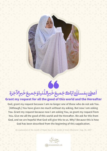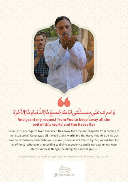 We ask God to stop evil from coming to us in both this world and the Hereafter. Imam Khamenei asks rhetorically, “Why do we ask God so extensively and continuously?” His answer is simple and practical: “Well, because it’s free to try!” We ask for everything, trusting that whatever aligns with divine expediency and our own best interests will be granted by the Almighty.