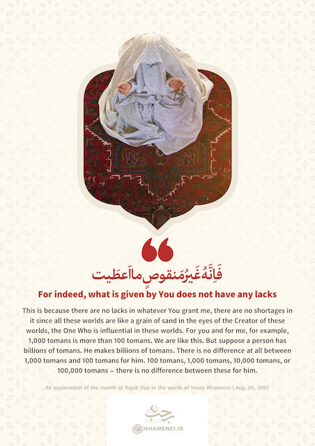God’s giving does not deplete His treasury. Imam Khamenei uses a monetary example to explain our limited human perspective. To us, there is a big difference between 1,000 tomans and 100 tomans. But for a person with billions, the difference between 100, 1,000, or 100,000 is nonexistent. If a billionaire gives a small amount, it changes nothing for them. Similarly, all these worlds are like a “grain of sand” in the eyes of the Creator. Giving to us causes no “lacks” or shortages in His dominion.