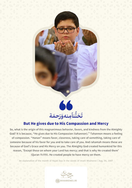 Why does God give to those who don’t even know Him? The supplication explains: “He gives due to His Compassion (Tahannon) and Mercy (Rahamah)”